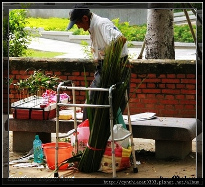他用草葉編蚱蜢.螳螂...小東西